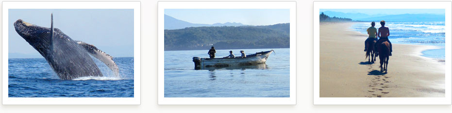 these amazing palapa style beach rental villas near Puerto Vallarta, Mexico. Enjoy incredible natural beach adventure and eco vacation activities, including swimming, surfing, fishing, whale watching, beach combing, horseback riding, and nature adventure including waterfall hiking, bird watching or exploration of the jungles. Boat and captain available for eco wilderness adventure activities. Visit the eco sanctuary of Isla Isabel, see thousands of nesting birds. See whales, turtles, rays, sharks in their wild and natural habitat. Visit protected bird eco nesting sites. Bird watcher eco paradise. Visit the world famous bird eco sanctuary and mangrove estuary of La Tovara near San Blas. Ecological preserves and nature offer wonderful eco activity and eco adventure to the naturalist who values unspoiled nature, wildlife, sea birds and marine activities.